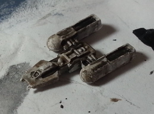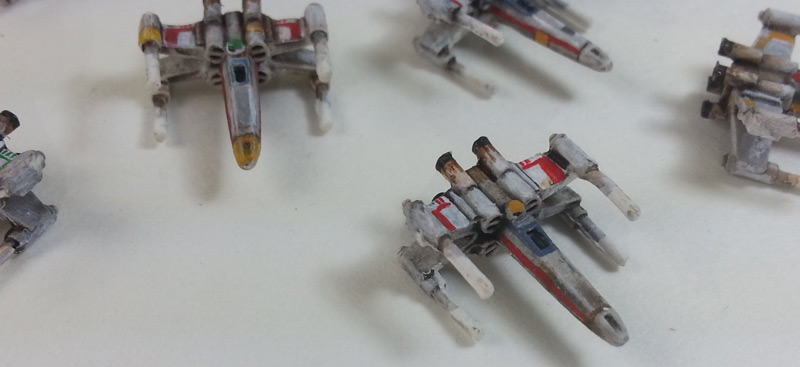 Battle damage was painted the same as the Y-Wings. Just remember that you are “working up to” white and if you make a mistake, you can paint over it.