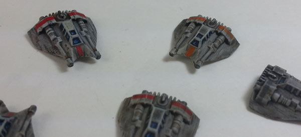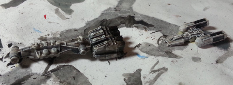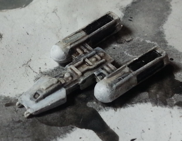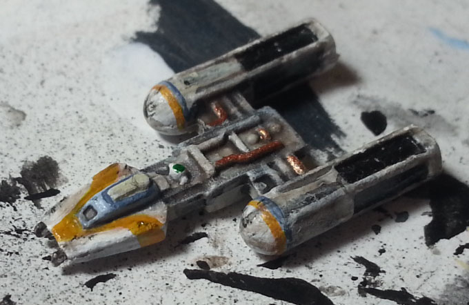 Remember, this is just the base colour, and the detailing will really give the ship some life. Look at how different the Corvette and the Y-Wing look in that photo compared to their final results, yet also notice how important a good base is.
