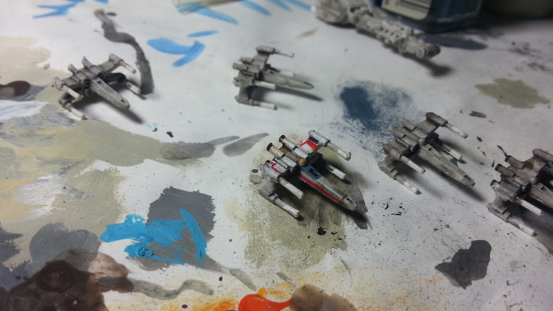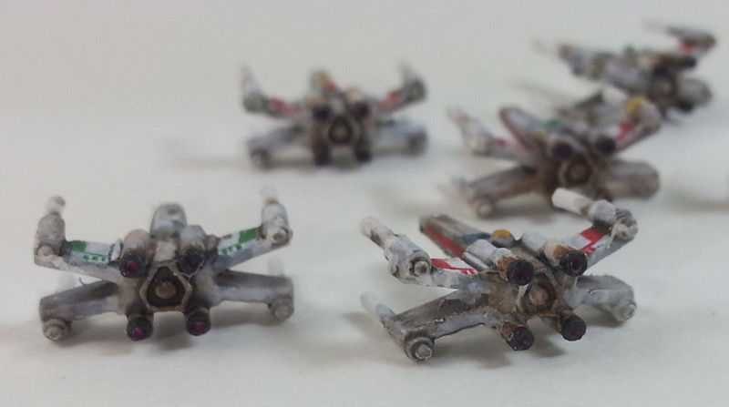 I painted my X-Wings very similar to the Y-Wings. I primed them in White, then washed them in Nuln Oil. Have I told you how much I love Nuln Oil?