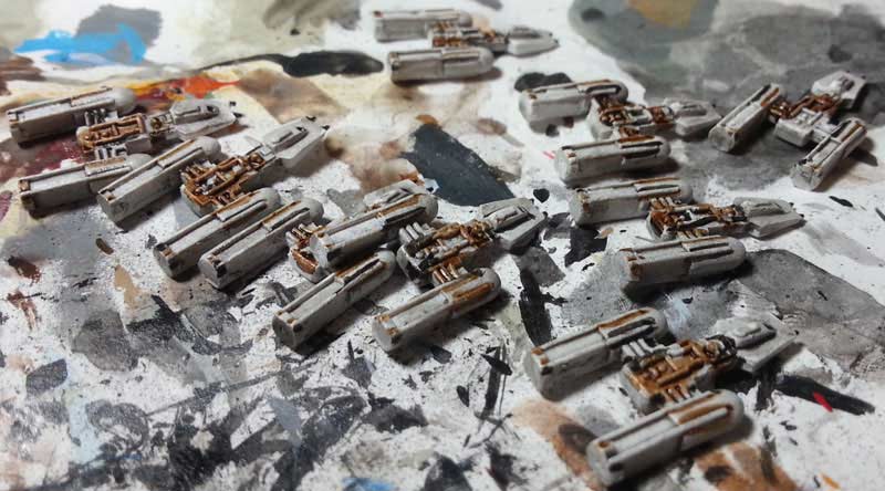 The Shield Generators were given a base coat of Nuetral Grey. They were washed in Nuln Oil, with some parts washed in Brown Ink.
