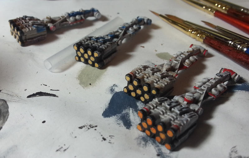 Sadly I do not have any notes as to how I painted these ships. All I remember is that they took a very long time. Part of the reason I didn’t take notes is because I was mixing lots of different paints to get the effects and colours I wanted.