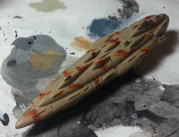 A final light wash in Yellow was applied to the engines to soften them up and unify them. Painting the engines is key as those eleven glowing engines are very iconic to the look of the ship.
