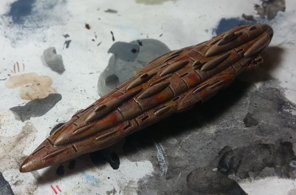 The engines were painted circles in Bronze Fleshtone, then washed over in Orange ink.