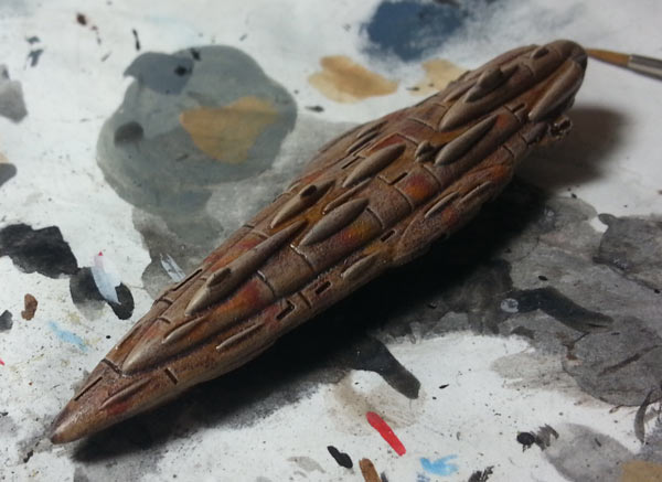 Some parts of the models were given a rust effect. This was achieved by dappling thinned Brown ink in an area and then spreading a light coat of Brown Ink between the dappled dots.