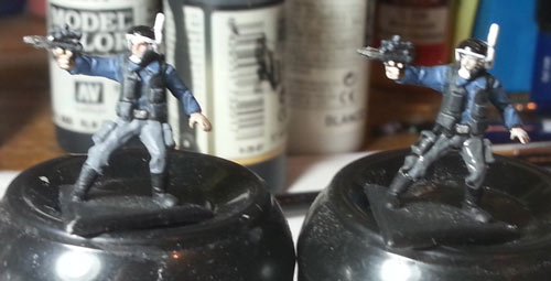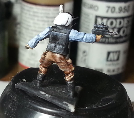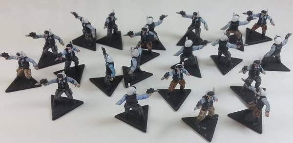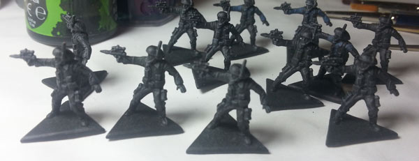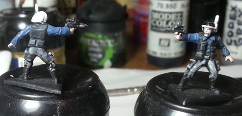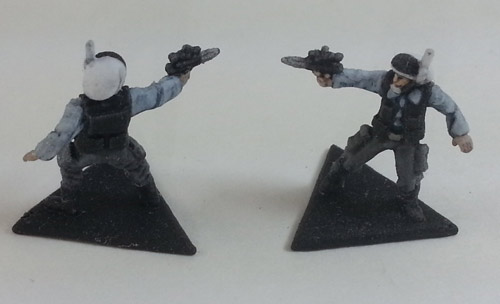 The Vests were painted Black, then lightly given a drybrush highlight using Neutral Grey + White in a 1:1 mix.