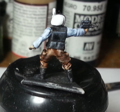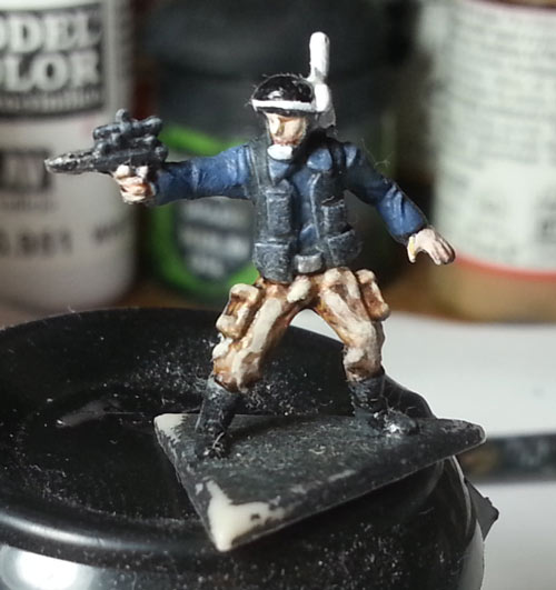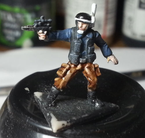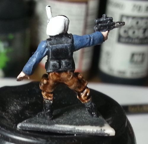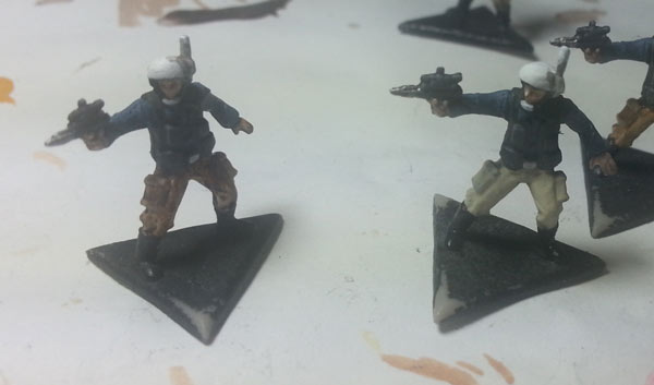 When researching what Rebel Troopers looked like, I saw some that had khaki coloured pants and some had grey pants. The guys in Star Wars aboard the Tantive had grey pants, so most of the Rebel Troopers were painted that way.