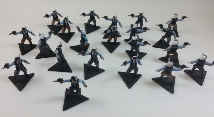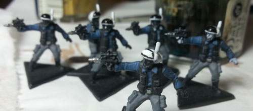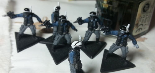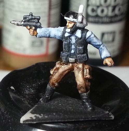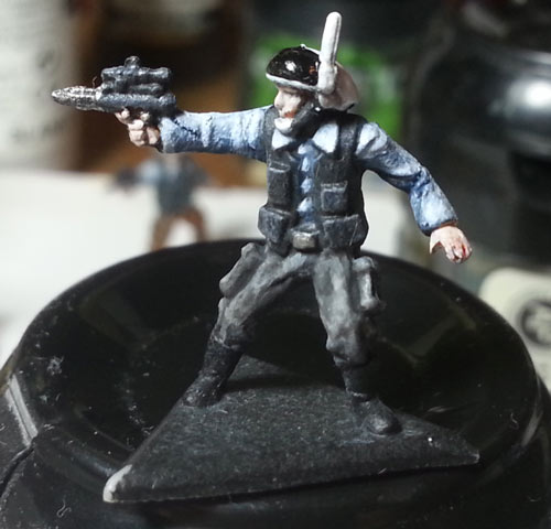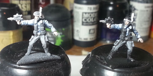 All the figures I painted were cleaned with needle files and an exacto knife. Some were primed white, some were primed black. I use P3 primer. Pretty much everyone I’ve talked to considers it the best on the market. I highly recommend it, especially for very small or ultra detailed miniatures like those found in Rebellion.