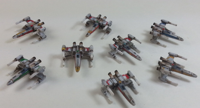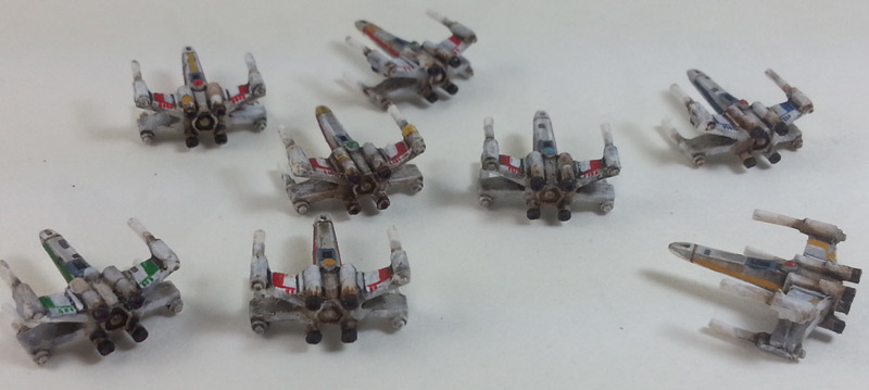 In the end, I painted 1 Gold Squadron, 1 Blue Squadron, 1 Green Squadron and 5 Red Squadron X-Wings. I’m very pleased with how they turned out and how much personality each little ship has.