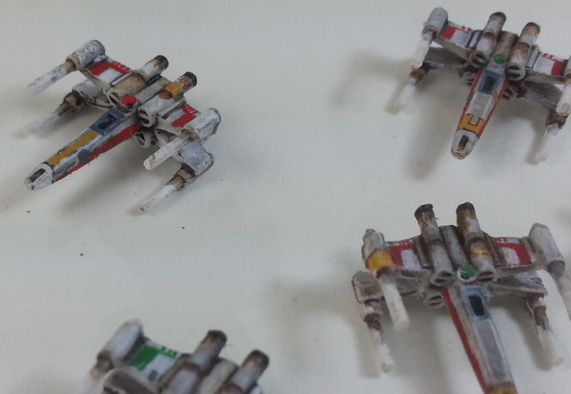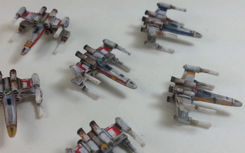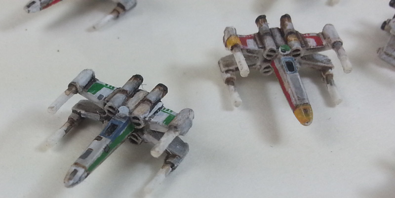 All the little astromechs were given a little dab of coloured paint and a dot for an eye. This gives each ship a unique character and story.